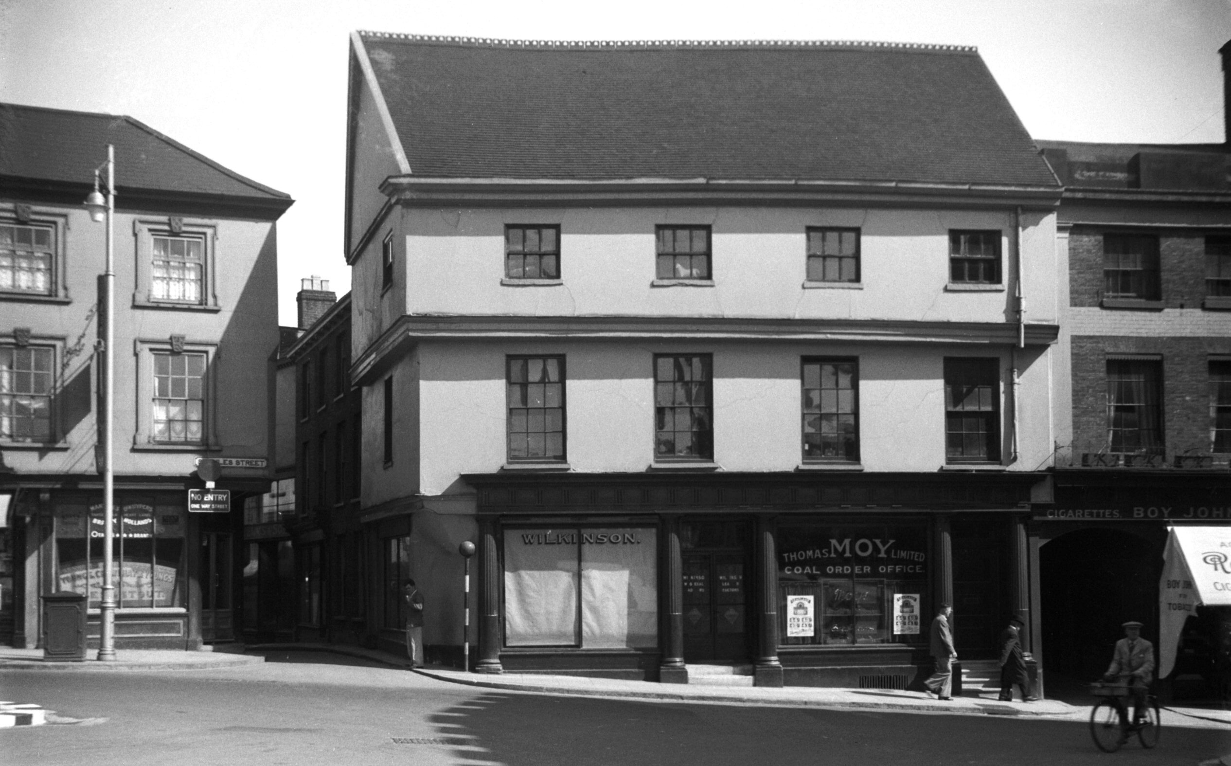 A prominent feature of the building were statues of Samson and Hercules on each side of the doorway. In July 2024, they were still there although the building was then a Mortgage Advice Bureau possibly with flats upstairs. However, what I hadn’t realised was that the current statues are replicas, which were placed there in 1998. The originals dated back to the 17th century when the original house was built by mayor of Norwich Christopher Jay. Apparently, the statues were taken into the care of the Norfolk Museums Service in 2003. Samson turned out to be original but Hercules was a Victorian copy. The original Samson is on display in an environmentally-controlled glass case at the Museum of Norwich at the Bridewell.